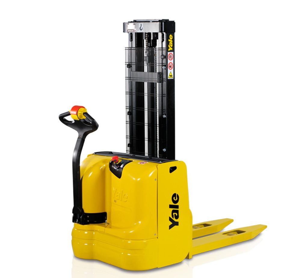 Empilhadeira patolada compacta, ideal para armazéns médios e corredores estreitos com alta eficiência.